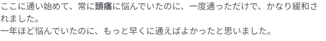 下記は頭痛でお悩みだった方の口コミです。是非参考になさってください。
