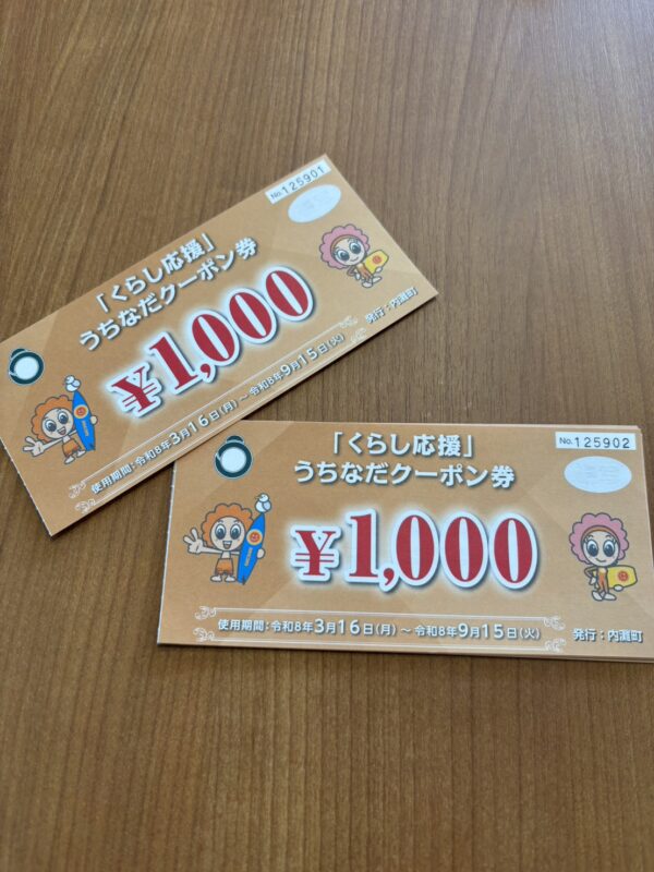 内灘町から発行されております「くらし応援」うちなだクーポン券が当院でもご利用いただけます。