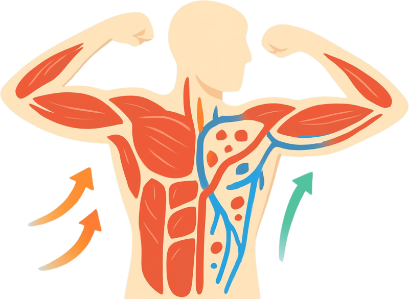 筋肉は動かすことでポンプのように血流を送り出します。