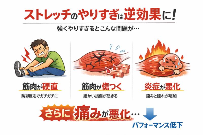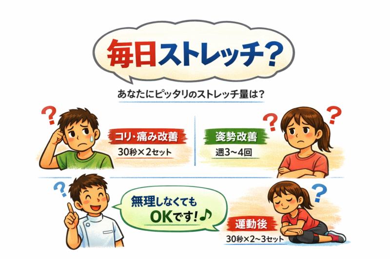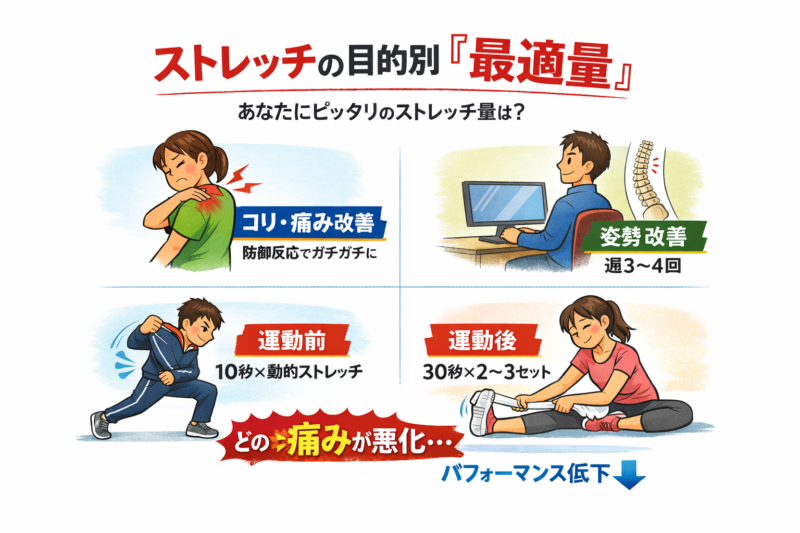 実はストレッチには“正しい量”があり、やりすぎても逆効果になることがあります。
