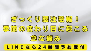 ブログ ぎっくり腰注意報!季節の変わり目に起こる急な痛み ブログをご覧いただきありがとうございます。内灘町で筋膜ケアに特化した施術の筋膜整体と鍼灸を受けることが出来る施術院です。「靴下を履こうとした瞬間…」 「くしゃみをしただけなのに…」 そんな大したことのない動作の油断した一瞬にぎっくり腰はやっ... 2025.09.22 ブログ
