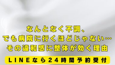 ブログ なんとなく不調、でも病院に行くほどじゃない…その違和感に整体が効く理由 ブログをご覧いただきありがとうございます。内灘町で筋膜ケアに特化した施術の筋膜整体と鍼灸を受けることが出来る施術院です。「疲れが抜けない」「肩が重い」「寝てもスッキリしない」でも、病院に行くほどじゃない…と、つい後回しにしてしまう。そんな違... 2025.09.26 ブログ